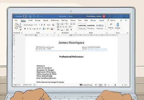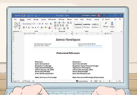 Format any additional references in a similar way. If you have experience in multiple fields of work, breaking your reference list into several subsections, one for each field, will make the page easier to read for your employer. Keep in mind that references that you gained while working in a field of work that differs greatly from the one you are applying for shouldn't be listed.