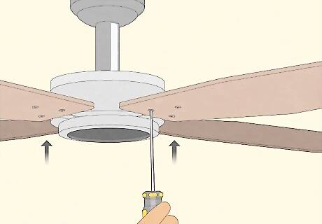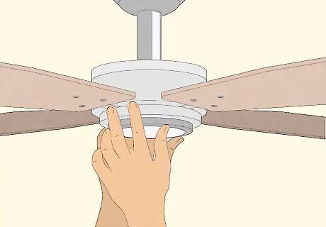 Now is the time to attach the canopy, fan blades, and any toggles. Attach the fan blades. One by one, lift the fan blades up to their mountings on the fan motor. Slot them into place according to the manufacturer’s guide, and use the provided screws to tightly secure them to the motor. Add any shades, aesthetic covers, etc. Make sure the screws are as tight as you can make them. Loose screws will cause the fan blades to wobble and potentially come loose as the fan is running.