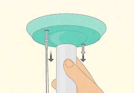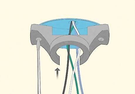 The ceiling plate/bracket is what the fan hangs on. Hold the ceiling plate up to the fan box and pull all of the wires through the hole in its center. Use the provided screws to tightly secure the ceiling plate in place. If your new fan’s ceiling plate looks identical to the old one, you don’t need to replace it. Always follow the manufacturer’s instructions when working with specific parts. The method for attaching ceiling plates and brackets may vary, so consult your manual. If you have a ceiling medallion or any molding to go around the fitting, attach it now. This will be a decorative piece that surrounds the fitting and is secured to the roof. Use a small amount of urethane-based adhesive to hold it to the ceiling, before securing it in place with four finishing nails. For a better-finished appearance, cover the nail holes with caulk or spackle.