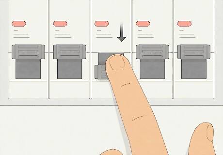 Flip the fuse on the circuit breaker box to avoid shocking yourself. Lee explains that you must cut power to the area before you touch anything else. Locate the circuit breaker box in your home and turn off the power to the room or area your fan will be installed in. Some homes will have multiple breaker boxes, with one main and several sub-breaker boxes in different places. If you have multiple breaker boxes, turn off power at the sub-breaker box and the main box before beginning work. If you aren’t sure which fuse corresponds to the room where you’re installing the fan, just flip the main breaker to shut power off to the whole home.