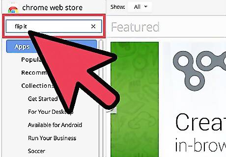 Find Flip It. Type in “Flip It” on the search text field on the upper lefthand corner of the Web Store page and press the “Enter” button on your keyboard to begin searching. A list of search results will be displayed on the page.