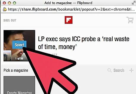 Hover your mouse over the magazine. After logging in to your account, the article you want to add to your magazine will be displayed on the same small window. Move your mouse cursor over the thumbnail of the magazine and a “Select” button will appear.