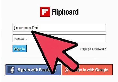 Log in. Enter your username/email and password on the text field provided to log into your Flipboard account. If you want to create a new account using your Facebook or Google+ account, or you're already using it as your login method, then just click either the “Sign In with Facebook” or “Sign In with Google” to continue.