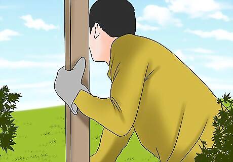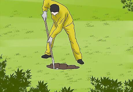 Dig a hole approx 600mm deep x 200mm x 200mm at one end.