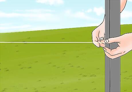 Adjust the end posts as required. Up and down until the top string clears the ground by 1820 mm for the full length of the fence. (To check your level if it is a dead straight fence - stand back about 4 meters and line the string up on the brickwork of a close house with your eye, this works well).