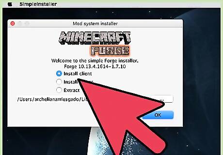 Select “Install client,” then click “OK.” Minecraft Forge will begin installing itself on your computer and display a message when complete.