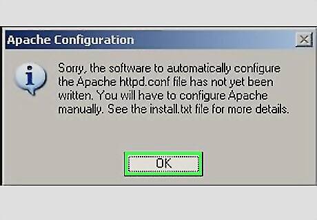 Wait for a message window to pop up, that looks like this: This is normal. Click "OK". When the PHP installer window pops up, click "OK" again.