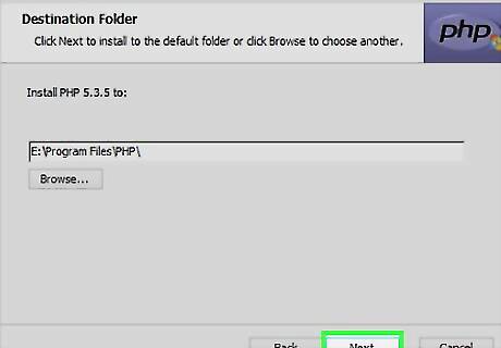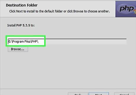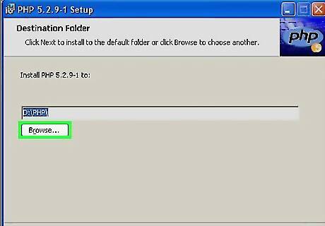 We're going to install PHP in our server directory instead of the default PHP directory, so in the "Destination Folder" group, click "Browse".