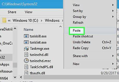 Browse to the directory "C:\Windows\System32" and Paste the file into that directory.