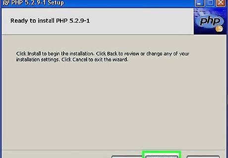 Now that you have set all the options, you should see a window that looks like this: PHP is ready to install, so click "Next>" to begin the installation.