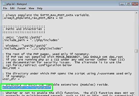 Using Notepad, open the file "C:\Server\php\php.ini".