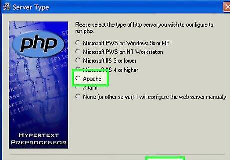 On the next window is where you pick which web server software you are using. Since you have installed Apache, pick "Apache" from the list. Then click "Next>".