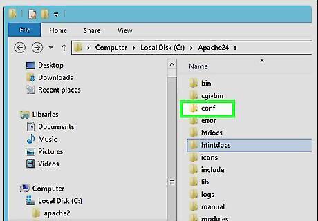 In Windows, open "My Computer", and browse your way to the folder "C:\Server\Apache2\conf".