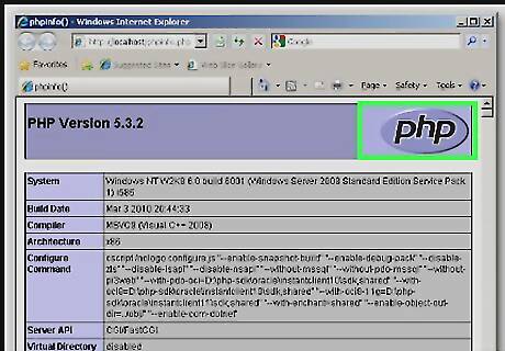 Open your favorite browser. In the address bar, type "http://localhost/phpinfo.php". If everything is set up correctly, you should see a page that looks like this: