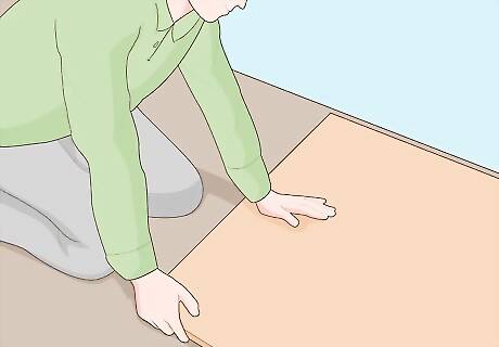 Lay the plywood in the room across the existing floor. Start by moving the biggest pieces of plywood in first. These pieces usually belong near door openings with lots of foot traffic. Keep the factory-cut edges against the wall and over breaks in the subfloor, if possible. Position the boards so they are perpendicular to the seams or joists in the existing floor. Make sure the seams in the plywood don't overlap the seams in the subfloor. It can weaken the underlayment. If you arrange the boards so they are perpendicular to the seams, this won't be a problem. Fill in tight areas, such as spots near walls and furniture, with cut boards. Face any cuts you make toward the inside part of the room. The factory-made cuts are easier to align with the walls.