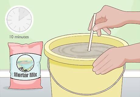 Mix thinset mortar in a bucket until it reaches a spreadable consistency. Thinset mortar is a cement adhesive often used to bind underlayment to cement. Choose a modified thinset mixed with a latex additive, then stir it into a plastic mixing bucket with water. Keep stirring it with a paddle mixer until it looks spreadable like a thick peanut butter. After letting it rest for 10 minutes, mix it a second time. Thinset mortar is available online or at most home improvement stores. Remember to put on a dust mask and safety glasses before mixing the mortar. Check the manufacturer's instructions for the recommended ratio of water to thinset. It can vary between brands, but you usually need about 6 cups (1,400 mL) of water for every 50 lb (23 kg) of mortar. If you're installing underlayment over concrete, consider trying an unmodified thinset mortar instead. You don't need the additive to get it to bond strongly to the existing subfloor.
