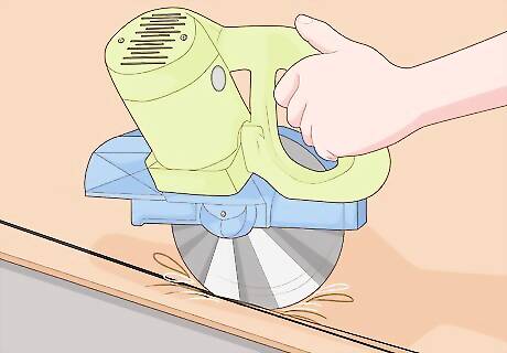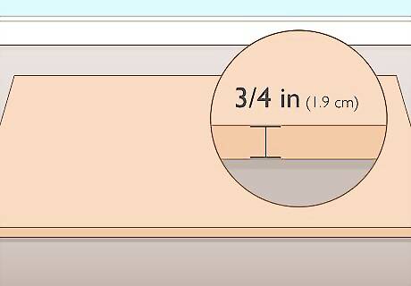 Purchase ⁄4 in (1.9 cm) plywood or another wood underlayment. Plywood is a common underlayment because it creates a smooth surface for most types of flooring. The boards have to be at the correct thickness in order to fit between the walls and subfloor. After purchasing the boards, leave them in your home for up to 2 days to warm to room temperature. Then, inspect them and discard any that boards that look damaged. Plywood underlayment is available online or at most home improvement stores. Look there for any other tools you may need to install the underlayment. Switch to cement boards if you're planning on installing tile. Spread mortar on the floor first to place the boards. You could also use particle board, which is cheaper but less resistant to damage. Pair a ⁄2 in (1.3 cm) layer of particle board with a ⁄8 in (1.6 cm) layer of plywood to strengthen it.