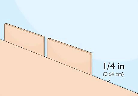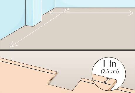 Leave the boards up to ⁄4 in (0.64 cm) from the wall. The boards should always be at least ⁄8 in (0.32 cm) from the wall. They will expand and contract as the weather changes. The extra space prevents them from cracking. Leaving a little space allowance also protects the walls. Plywood can scratch up walls if you're not careful. It's better to avoid having to deal with repairs and a new coat of paint.