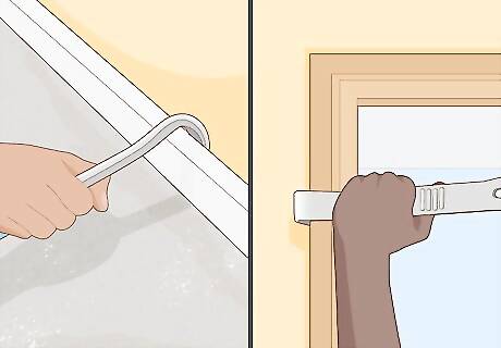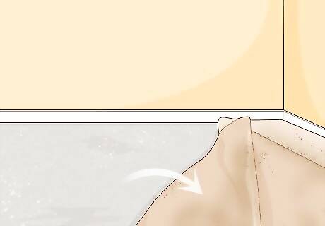 Pry off the baseboards and door frames if the room has any. The baseboards get in the way of the installation, so they always have to be removed. Cut through the caulk using a utility knife, then pull the boards off the wall with a flat knife and pry bar. The door frames can also get in the way if they are long enough to touch the subfloor. Remove them the same way as the baseboards. Reinstall these components after you finish laying the new underlayment. If the boards are in poor condition, replace them to freshen up your room's aesthetic. You need about ⁄8 in (0.32 cm) of clearance between the bottom of the frame and the subfloor. If that space is already available, you won't need to remove the frame. Otherwise, cut the frame shorter to create space for the underlayment.