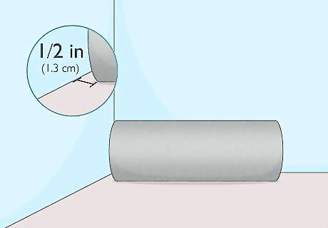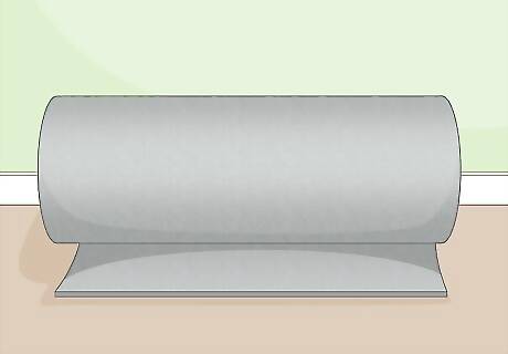 Roll the membrane out inside the room. Start in the far corner of the room. Spread the first roll of the membrane material out next to the wall. Continue adding more rolls of the material until the entire floor is covered. Leave a ⁄2 in (1.3 cm) gap between the underlayment and the walls. Consider marking the rolls in permanent marker so you know where each one fits in the room. For instance, mark the first roll near the far wall as 1, then the one next to it as 2.