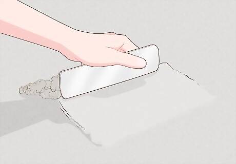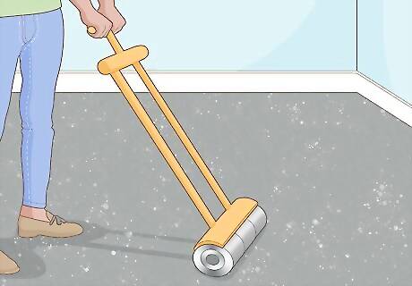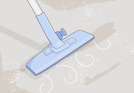 Sweep and vacuum up any debris left on the floor. Sweep out as much dirt, dust, and flooring fragments as you can. The floor has clear for the underlayment to adhere properly. You won't be able to see all the debris present, so bring in a strong vacuum to ensure the floor is as clean as you can make it. Take care of any paint, stains, and adhesives on the floor. Also, pull up nails and staples that could get in the way of the installation.