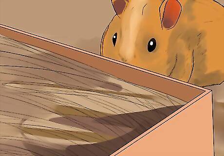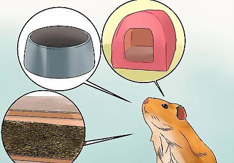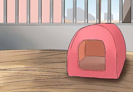 Put in the right accessories. Guinea pigs need a variety of items in the cage including their food bowls, water, hideaways, and a few extras that are optional but help with their well-being. Hideaways or hide houses are important as guinea pigs like to have a place they feel they can be safe and quiet. There are usually wood varieties, edible ones, and plastic ones. Get a hideaway that is easy to clean, the guinea pig(s) won't easily toss aside when they run and is safe for them to chew. The edible hideaways have the added benefit of giving the guinea pigs more safe chewing material for the health of their teeth. These hideaways are usually covered in vegetable-based dyes. Some hideaways are large enough for multiple pigs but put in two or three if you have the cage room and need to offer the shelter for more than one guinea pig. These hideaways are usually inexpensive.