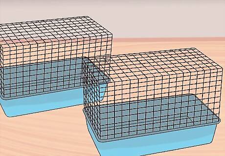 Set up a separate cage for the new guinea pig. Once you have the community cage set up with the guinea pigs you already own you will need to keep the new member separate to make sure they are safe to add. Follow the steps in the earlier method for setting up a cage for a single guinea pig. Keep the new guinea pig in the separate cage for approximately two weeks. Make sure the new guinea pig eats, drinks, and otherwise behaves normally. There should be no signs of poor appetite, lethargy, or visible injury. Have your veterinarian check the new guinea pig to ensure it won't carry any diseases into the community cage.