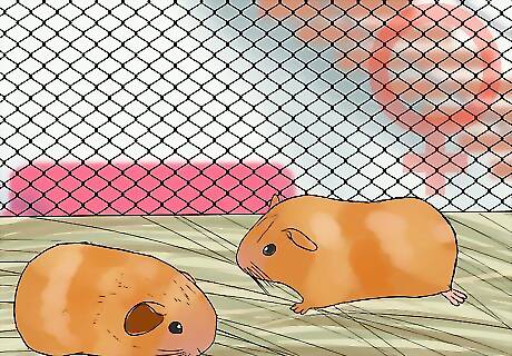 Get the new guinea pig used to the other guinea pigs' scent. One way to do this is at playtime. Guinea pigs are social animals normally and like to be in each other's company. Set up a safe penned off room free of cords or other hazards to let the new guinea pig meet the others. Never let the guinea pigs roam unsupervised outside their cage. Don't let un-neutered males play with females. Generally, it's best to have guinea pigs of the same gender stay together.