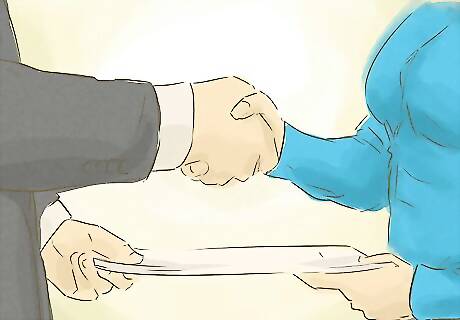 Proceed to closing. At approximately 18-24 months after hard contract when the project is at or almost fully completed, you will be issued a Certificate of Occupancy (CO). At this point you are granted access to inspect your unit and create a list of any faults you find. If everything is satisfactory, you will go to closing. At closing you should have financial arrangements made regarding the balance of the unit or units. This is done by securing financing or having available cash or transferable assets.