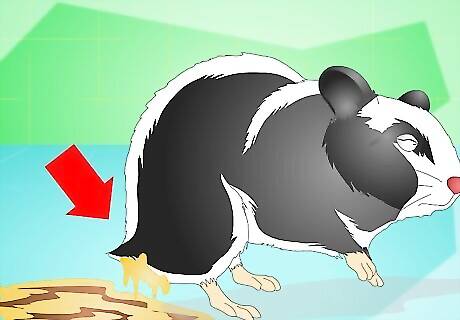 Check his bottom. If your hamster is experiencing digestive problems, you can tell by examining his rear end. Loose stools, staining, or a wet tail can be an indication of diarrhea. Such ailments should be evaluated by a veterinarian. Your hamster may need a change in diet or he may have an infection or illness that requires medication. Stress can also trigger diarrhea in hamsters. If there have been any recent changes to your home, your hamster may experience diarrhea. If you have a female hamster, an infection of the womb called Pyometra can be detected by examining the rear end. If you notice any discharge or a foul smell from the opening above the anus, take your hamster to the vet for evaluation.