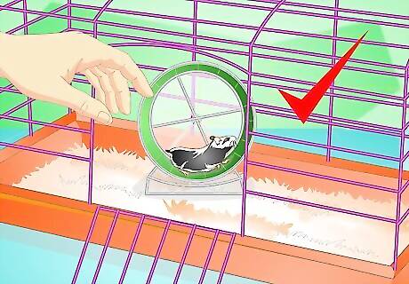 Get the right wheel. As stated, a wheel is an essential part of your hamster's health. However, you want to make sure your hamster's wheel is big enough for safe use. Small wheels can cause back problems from your hamster bending his back to fit the wheel. If you have a larger hamster, go for a bigger sized wheel. At minimum, look for a wheel of at least 6.5 inches. Certain types of hamster, like Syrian hamsters, tend to grow very big. In this case, you should get a wheel that's at lest 8 inches.