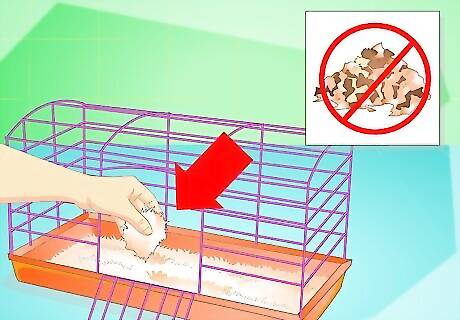 Choose the right bedding. Make sure you choose quality bedding for your hamster. Cedar bedding should be avoided, as it can cause skin irritation for some hamsters. You can find bedding safe for your hamster online or at a local pet store. Never use pine bedding, scented bedding, fluffy bedding, newspaper, cat litter, or corn cob as bedding. These can be harmful to some hamsters. If you're using a litter box for your hamster, make sure the substance you use in the litter box is completely different from his bedding. For example, if you're using a wood-based bedding do not use a wood-based litter. This will discourage your hamster from using his litter box.