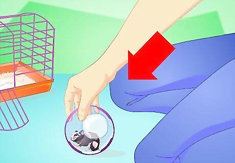 Supervise your hamster when you let him out of his cage. You should never let your hamster out of his cage unsupervised. If you use a hamster ball or similar device, only allow your hamster to roam in it when you're watching. Accidents and mishaps can occur, resulting in injury and even death. Your hamster should never be allow to roam the house without supervision.