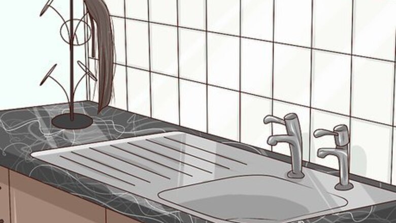 Place your ponytail on a stand or other sturdy surface near a sink. Find a clean area in your home that you don’t mind getting wet, like your sink. Arrange your wig stand and synthetic ponytail in this area, so your hairpiece will be easier to clean. It’s best to use a wig stand with a hook for this. Traditional, head-shaped stands likely won’t hold your ponytail very well.