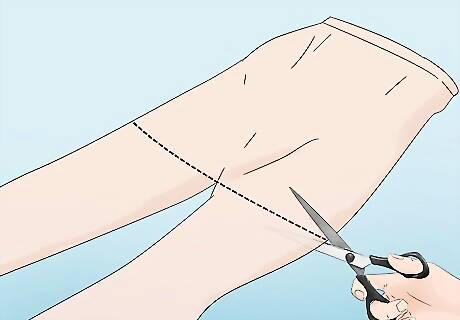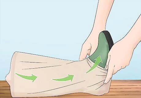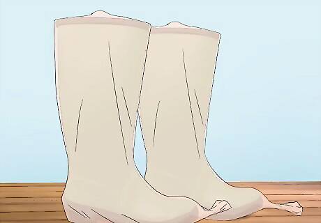 Roll a leg over the open portion of the boot, pulling down to the toe area. The toe area will sit across the open portion of the boot. The pantyhose acts as a barrier against any creepy crawlies finding their way inside.