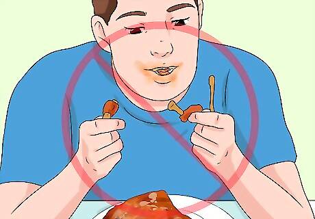 Forego foods with lots of sauce. Ribs and wings may be delicious, but their saucy nature makes them terribly hard to consume without a huge mess all over your hands and face. As a general rule of thumb, if your food requires a moist towelette, it’s best to avoid.