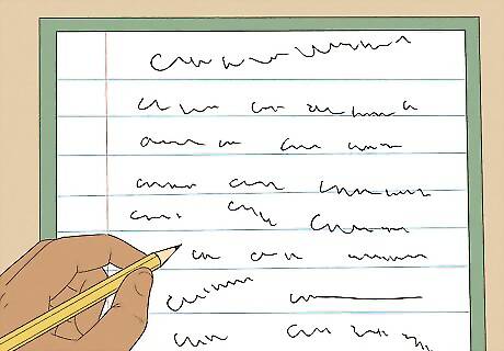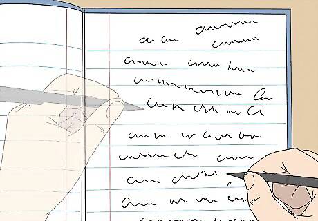 Begin to freewrite. Freewriting will help you write more naturally and quickly with your left hand. Come up with a topic to write about. It can be as random, realistic, or significant as you wish. Give yourself an allotted amount of time and begin a timer. Start. Using your left hand, let your mind take control. Write as much as you can about your topic in the allotted amount of time. Do this consistently and you’ll be completely relaxed and comfortable writing with your left hand in no time. The content in freewriting is not meant to be criticized—only analyze your handwriting.