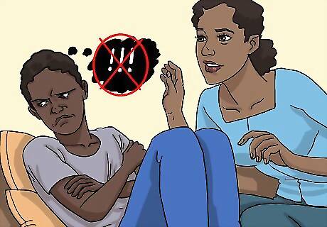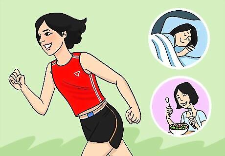 Adopt a healthy lifestyle. Getting enough sleep, eating properly, and exercising regularly can all help make you happier. Maintaining a healthy lifestyle will help you feel your best and make you less likely to lose your temper with your mom. Talk with your mom about ways that you can improve your diet and get more exercise. Try practicing meditation or yoga as a way to calm yourself.