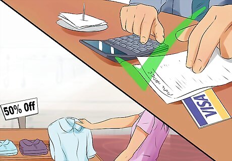 Shop for discounts. By seeking more affordable options, it is possible to save a significant amount each month. Seek out household items at your local thrift store or used clothes shops. Use your local library to take out books, movies, and magazines instead of spending money at a retail shop. When you have a limited budget, it may be hard to justify a spontaneous purchase and simple items like a new book or a new pair of shoes can seem like luxuries. Rather than depriving yourself of enjoyable items, look for the discounted or free alternative. Try to have fun with the hunt for discounts. Make it your mission to look for a used item in great condition at a garage sale or a thrift store, for half or one third of the price of a new item. Consider thrift locations like the Salvation Army or Value Village. As well, yard sales, or discount and outlet stores like TJ Maxx or Marshalls can offer attractive deals. Outlet stores like TJ Maxx or Marshalls offer brand name quality, except at up to 60% discounts since they receive inventory from overbuys at other locations. Additionally, watch for sales from other retailers as an opportunity to buy quality for less.