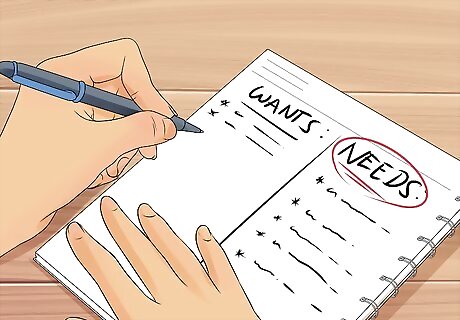 Become aware of wants vs needs. Once your budget is made, be careful to look at which expenses are wants and which expenses are needs. A need is anything that is absolutely required for living, whereas a want is something that is simply nice to have. When looking at expenses to reduce, look to reduce wants first. This ensures as much money as possible is available for necessary expenses. For example, a cell phone may be a need. However, a 3GB data plan may be a want. In that case, 1GB plan may be sufficient, and by downgrading your plan, you can reduce costs. Carefully look through every expense and honestly ask yourself if it is a want or a need. It's okay to buy something that's really meaningful to you, but try to stay away from mindless impulse purchases.