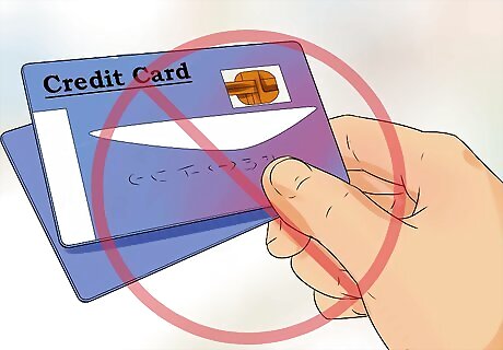 Avoid using credit cards. Every expense you charge on your credit card will need to be repaid, with interest. If you’re earning $8 an hour, repaying thousands of dollars may feel like a huge and impossible challenge. Piling up credit card debt will only make it more difficult to cover all your expenses, plus your debt payments. Outstanding debt can also make it difficult to negotiate for a down payment for a house or car down the line. While it may be difficult, if you have a large credit card debt, consider stopping credit card use all together and cutting up your credit cards. Assume if you can't afford something without a credit card, that you should not be purchasing it at all. To assist in this, use your monthly budget as described above to make sure all your essential expenses are covered by the payments from your job. If your salary is insufficient to cover your basic expenses, you can attempt some of the above tips to reduce your monthly expenses to a level that can be covered by your income. Leave your credit card at home when you depart for the day to reduce impulse purchases.