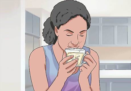 Do smell training. Smell training twice a day may improve your sense of smell. During smell training you will expose yourself to different odors twice a day. You will use four essential oils (e.g. Rose, Lemon, Cloves, and Eucalyptus) for your training. They can be purchased at health or beauty stores. Place a few drops of the oil on a test stick or cotton pad and allow it to sit for 2 minutes. Hold the pad/stick an inch from your nose and slowly inhale the fragrance. Do this twice and then rest for 5 minutes. After five ,minutes, move on to the next scent. Do smell training when you wake up in the morning and before you go to bed. You may not smell anything at first, but keep trying. It usually takes at least a week, before you notice any results. If you cannot get essential oils, you can choose some other strong, non-toxic odors such as perfume, coffee grounds, or flavor extracts for your smell training. Smell training is most effective if you start within 12 months of losing your sense of smell.