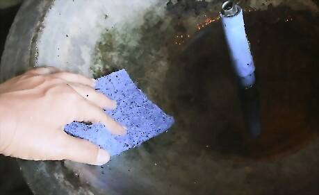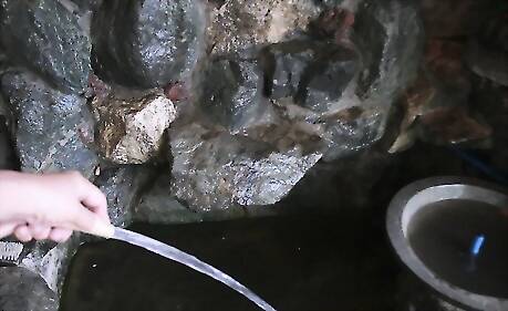 Keep your outdoor fountain's pump in good working order. The pump is the single most important piece of equipment in your fountain. If it's not working or working at reduced capacity, shut it off and remove it before making repairs. Look for obstructions and other signs of wear about once a month. Remove leaves and other debris from the pump's intake valve and housing. With the pump taken out of the fountain, wipe it clean with a damp cloth. Use a toothbrush to scrub hard-to-reach areas. Flush the pump and hose lines if they appear to be clogged. Replace filters or damaged components as necessary.