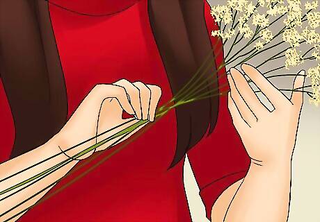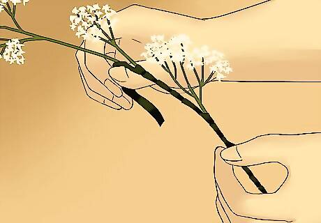 Choose a long bunch of baby’s breath. In order to make a baby’s breath crown using the stem of the flowers as the base, you need to choose a bunch of baby’s breath that has a long stem. The stem should be long enough to wrap around your head and fit like a crown.