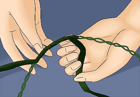 Wrap the wire with floral tape. Using floral tape, wrap the wire tightly with tape. This will help to hide wire and will give your homemade baby’s breath crown a more professional and finished look. Add extra tape to the end of the wire. This will help to prevent the wire from poking your while wearing it. You can use a green floral tape to blend in with the stems of the baby’s breath. If the crown is being used in a wedding, you may want to match the tape with the wedding colours. For example, try gold or silver floral tape.