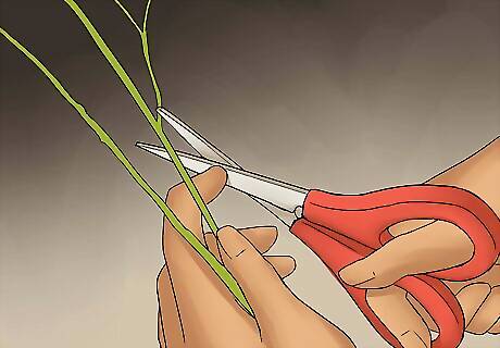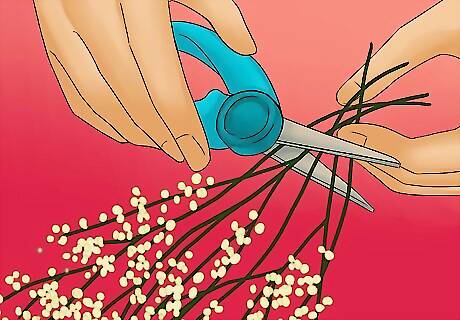 Trim the stem. Cut off all of the smaller bunches of baby’s breath that shoot off of the main stem. You can either cut them with scissors or just twist them off using your hands. Set these small bunches aside because they will eventually be attached to the crown.