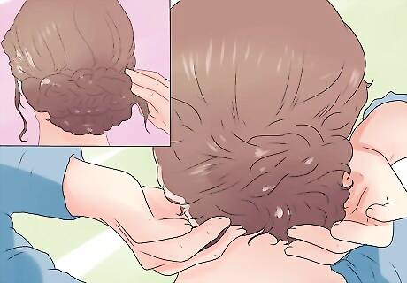 Gather your hair where you want the bun to sit. This bun looks beautiful right at the nape of the neck, or you could place it higher up on your head. Another great choice is the side bun, which dresses up the look a little to make it fitting for a cocktail party or even a wedding. Hold your hair in position with one hand to keep it in place. With the other hand, use a hand mirror with your bathroom hair so you can view the back of your head and see what the placement will look like.