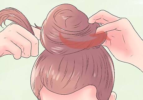 Wrap it around the ponytail holder. Create a bun shape by wrapping your ponytail around the holder to hide it from view. Use several bobby pins to hold it in place.