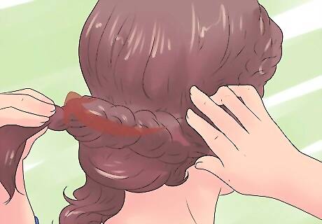 Wrap the tail of the braid around the base of your bun. Lay it against your head so that it curves back to your bun, then wrap the end of the braid around the bun. Pin it in place with a few bobby pins.