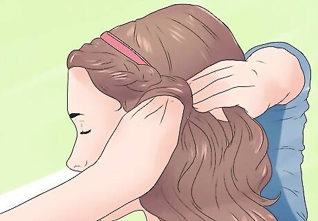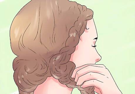 Part your hair on one side. This style looks best with hair that's parted to one side, though you could do a middle part if you're going for a milkmaid look. Part it where you naturally do or move your part a few inches to the right or left for a more dramatic look. Run the tip of a comb along your part to make sure it looks nice and neat.
